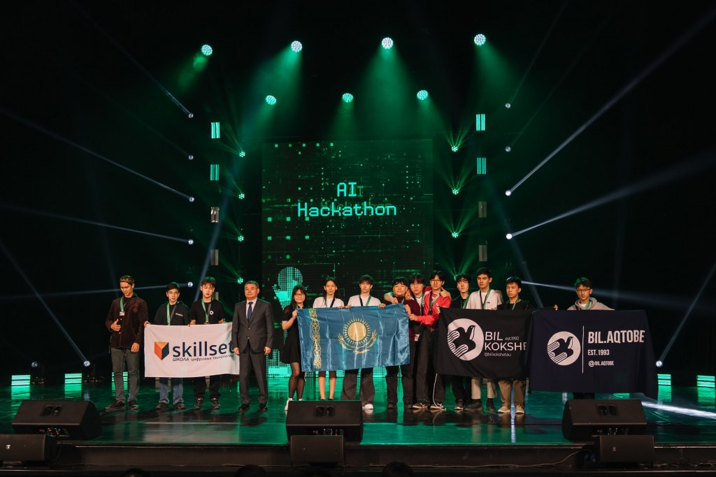 AI Hackathon (Жасанды интеллект хакатоны) бағыты бойынша: Қуанышбек Нұрислам - 10-сынып оқушысы, Қуан Арсен - 10-сынып оқушысы, Абенов Чингиз - 10-сынып оқушысы.