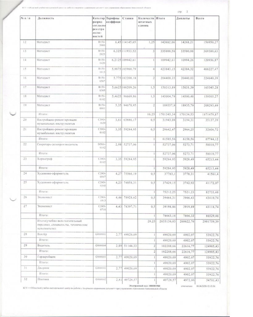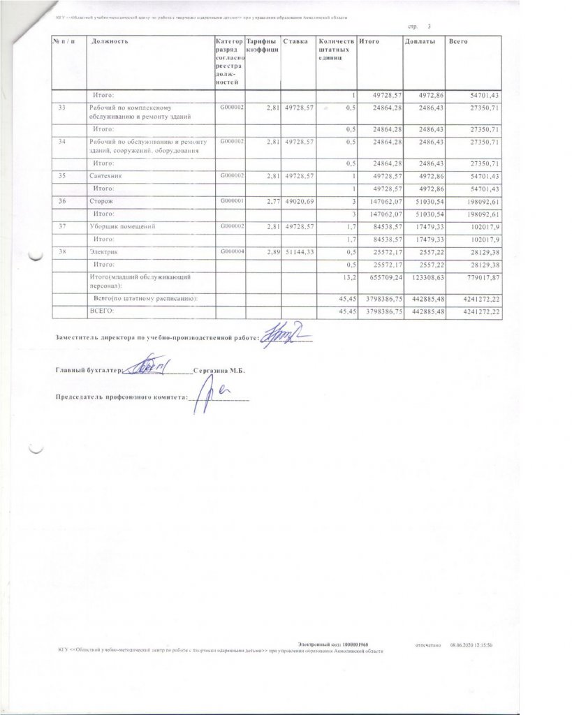 Штаттық кесте